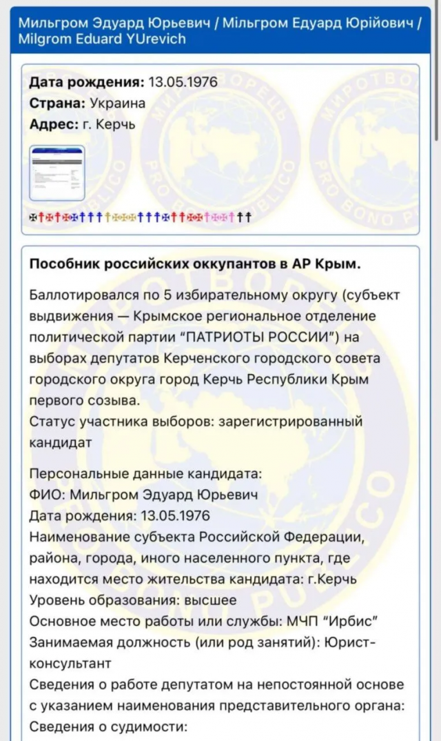 Гайченко зазначив, що з 2022 року вони не проживають разом, і він нібито не знає про діяльність її родичів. Водночас за інформацією джерел агенції, родина Мільгромів отримала російські паспорти ще в березні 2014 року, коли Крим був анексований.