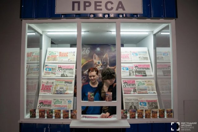 У відтворений в Арсеналі художній кіносвіт Бондарчука та Аверченко відвідувач виставки потрапляє через ньюзрум "Редакції". Вікно, у якому палає ліс, тут теж є. Поруч кіоск з газетами. Кіношна "Пектораль" тут органічно виглядає серед справжніх херсонських газет.