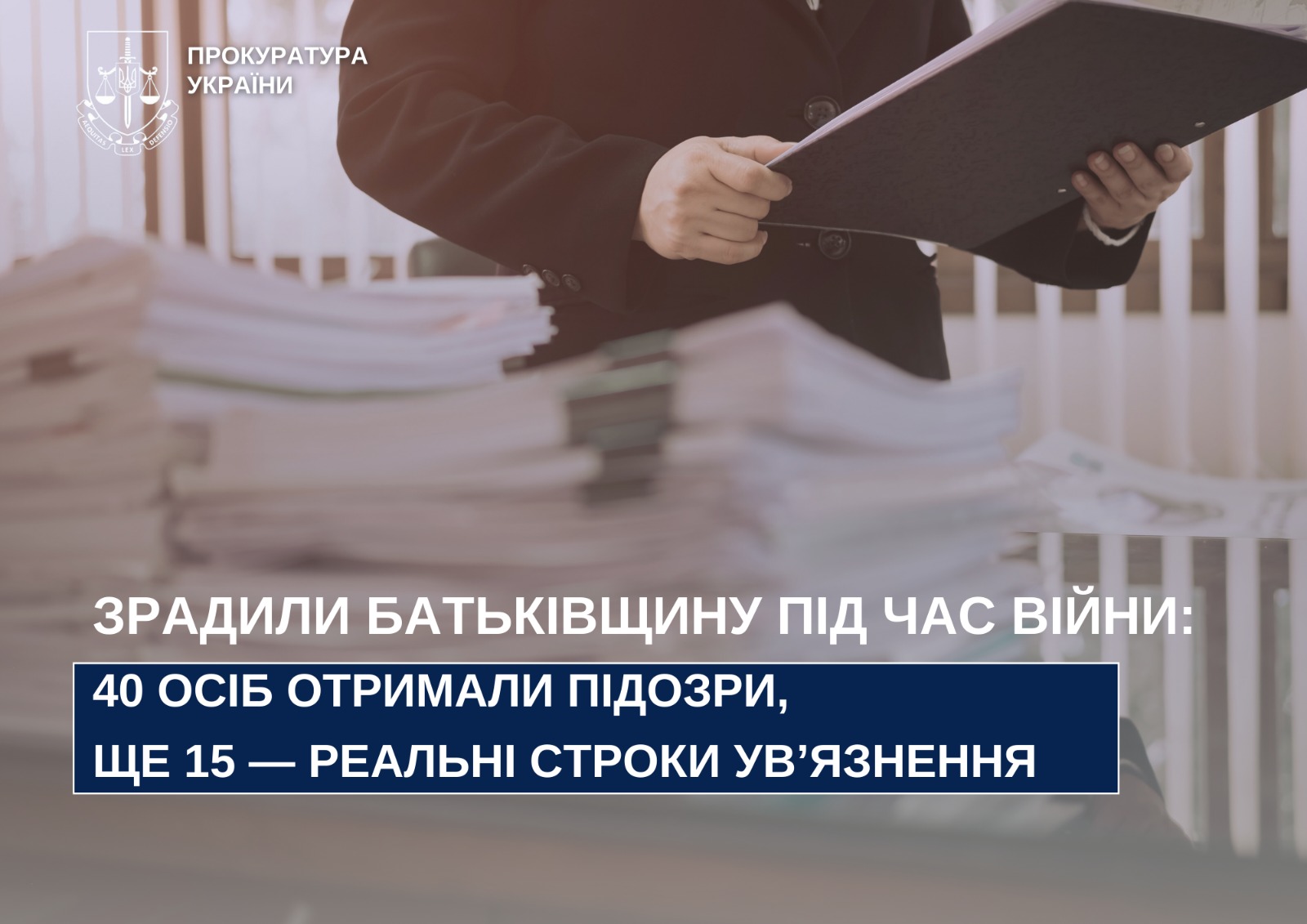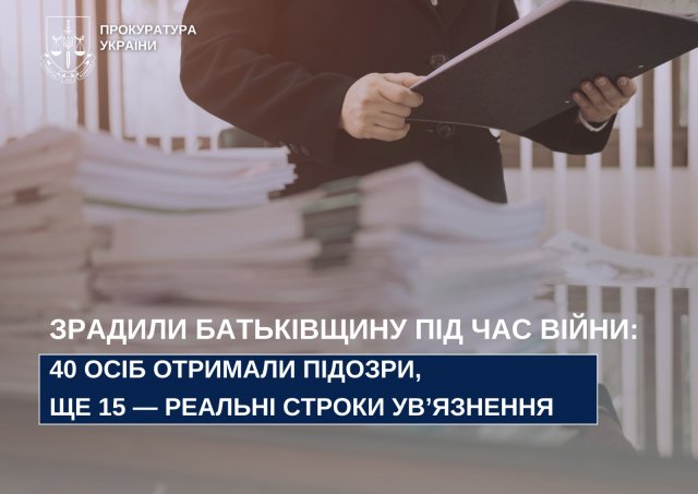 За зібраними доказами 40 особам заочно повідомлено про підозру у злочинах проти основ національної безпеки (ч. 7 ст. 111-1, ч. 5, 6 ст. 111-1, ч. 3 ст. 436-2, ч. 2 ст. 111, ч. 1 ст. 111-2 КК України). Вони добровільно пішли на службу рф, обіймали посади у незаконних «адміністраціях», «правоохоронних органах», брали участь у псевдореферендумі та виборах, передавали ресурси підприємств, поширювали російську пропаганду.